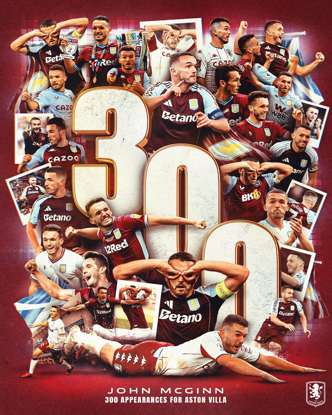 आज के रिज़र्व खिलाड़ी का पदार्पण, मैकगिन ने विला के करियर में 300-गेम के मील के पत्थर का स्वागत किया