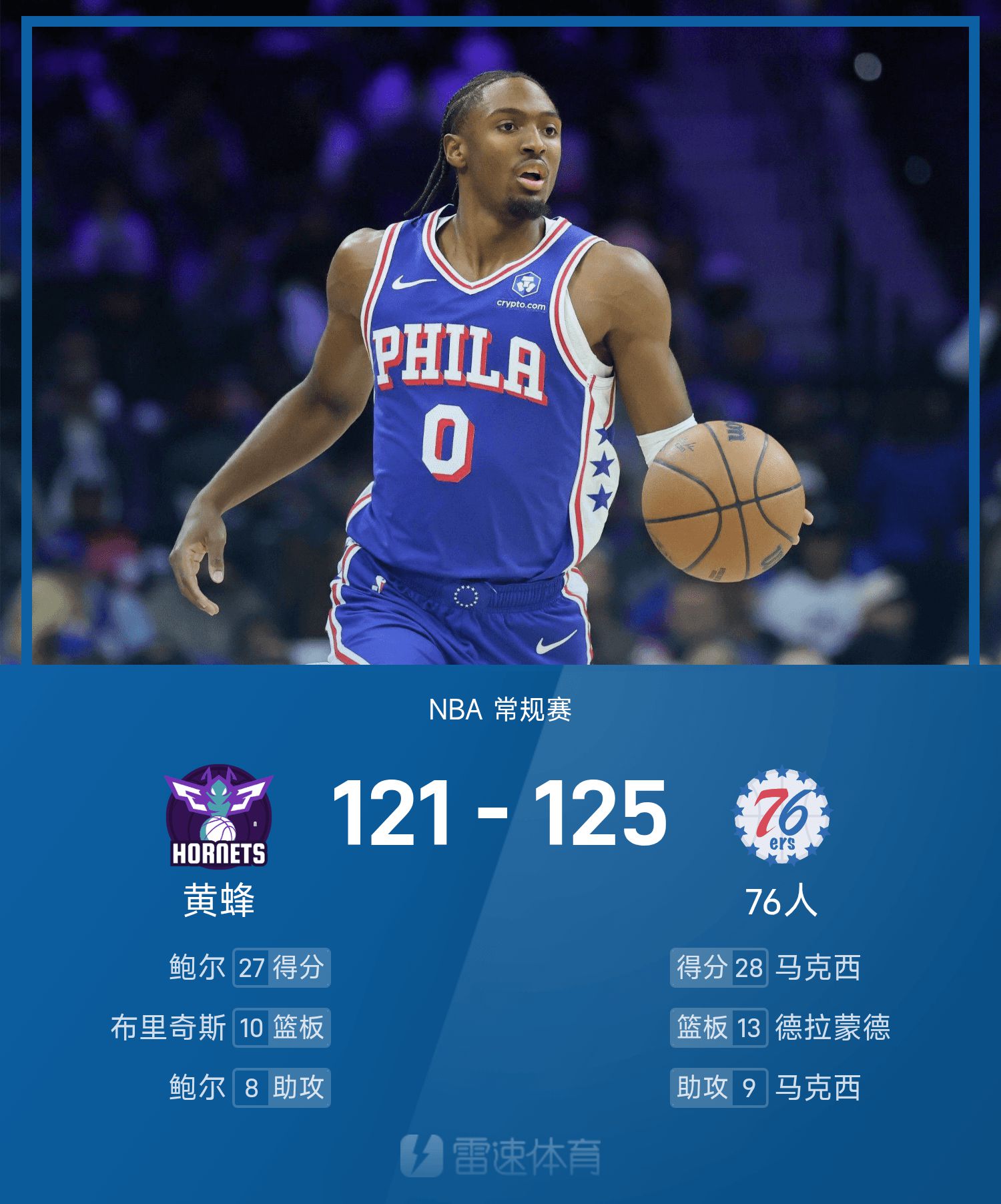 76ers गार्ड मैक्सी ने 28 अंक, 6 रिबाउंड और 9 सहायता प्राप्त की, जो खेल में उच्चतम स्कोर है; 76ers के रिजर्व खिलाड़ी ग्रिम्स ने 24 अंक बनाए और अंतिम 13 सेकंड में एक महत्वपूर्ण तीन-पॉइंटर मारा जिससे टीम को स्थिति को उलटने में मदद मिली।