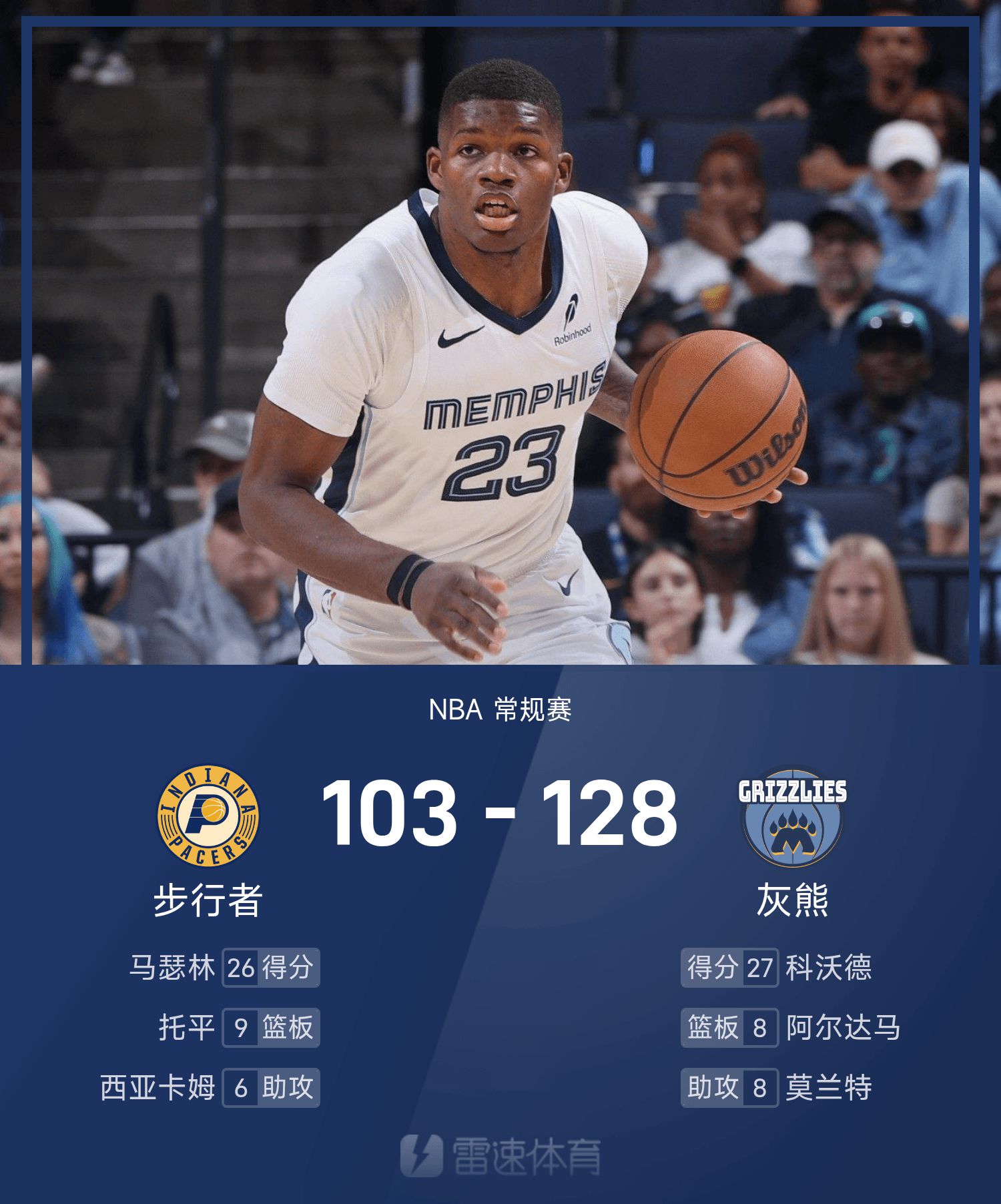 ग्रिजलीज़ ने पेसर्स को 128-103 से हराया