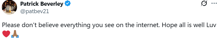जवाब में, बेवर्ली ने समाचार अपडेट किया और लिखा: "कृपया इंटरनेट पर जो कुछ भी आप देखते हैं उस पर विश्वास न करें। मुझे आशा है कि सब कुछ ठीक है और मैं आपसे प्यार करता हूं।"