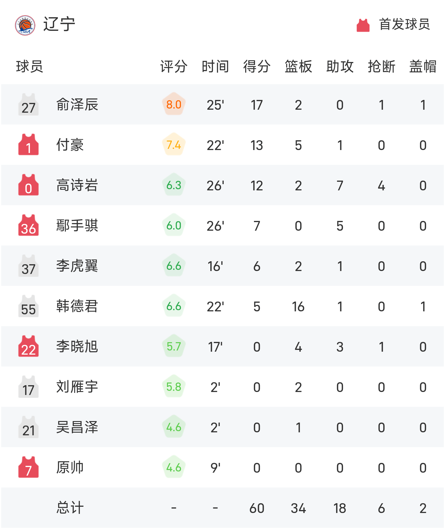 झोउ क्यूई ने 16 अंक, 13 रिबाउंड और 1 सहायता से टीम को जीत दिलाई। यू ज़ेचेनकोंग ने गेम में सर्वाधिक 17 अंक और 2 रिबाउंड बनाए। अनुभवी खिलाड़ी हान देजुन ने आखिरी नृत्य की शुरुआत की और 16 रिबाउंड हासिल किए।