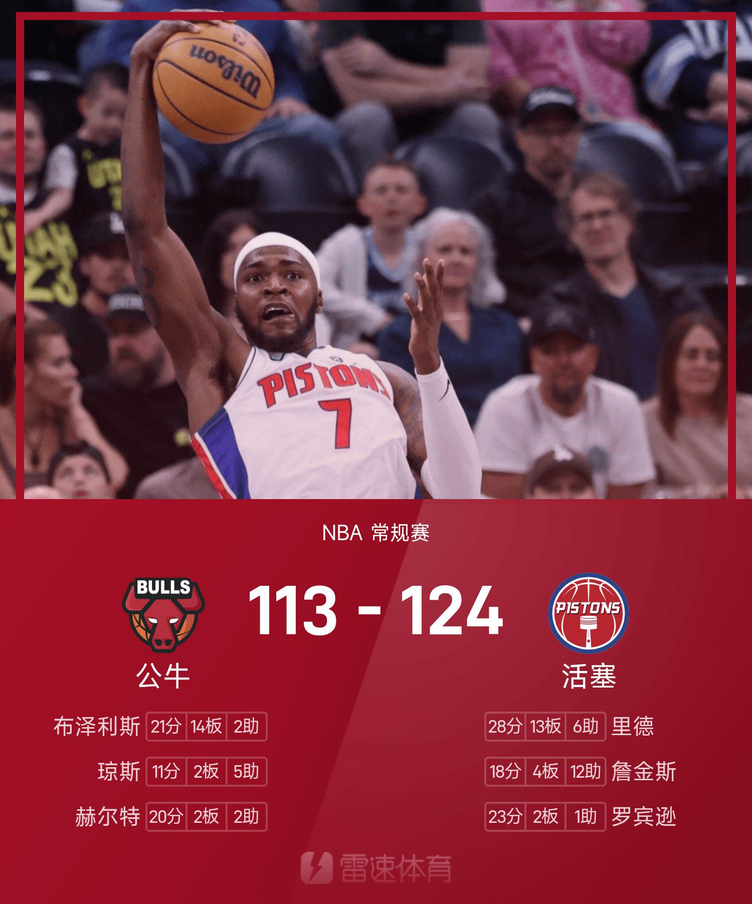 खेल के अंत में, पिस्टन ने बुल्स को 124-113 से हरा दिया।