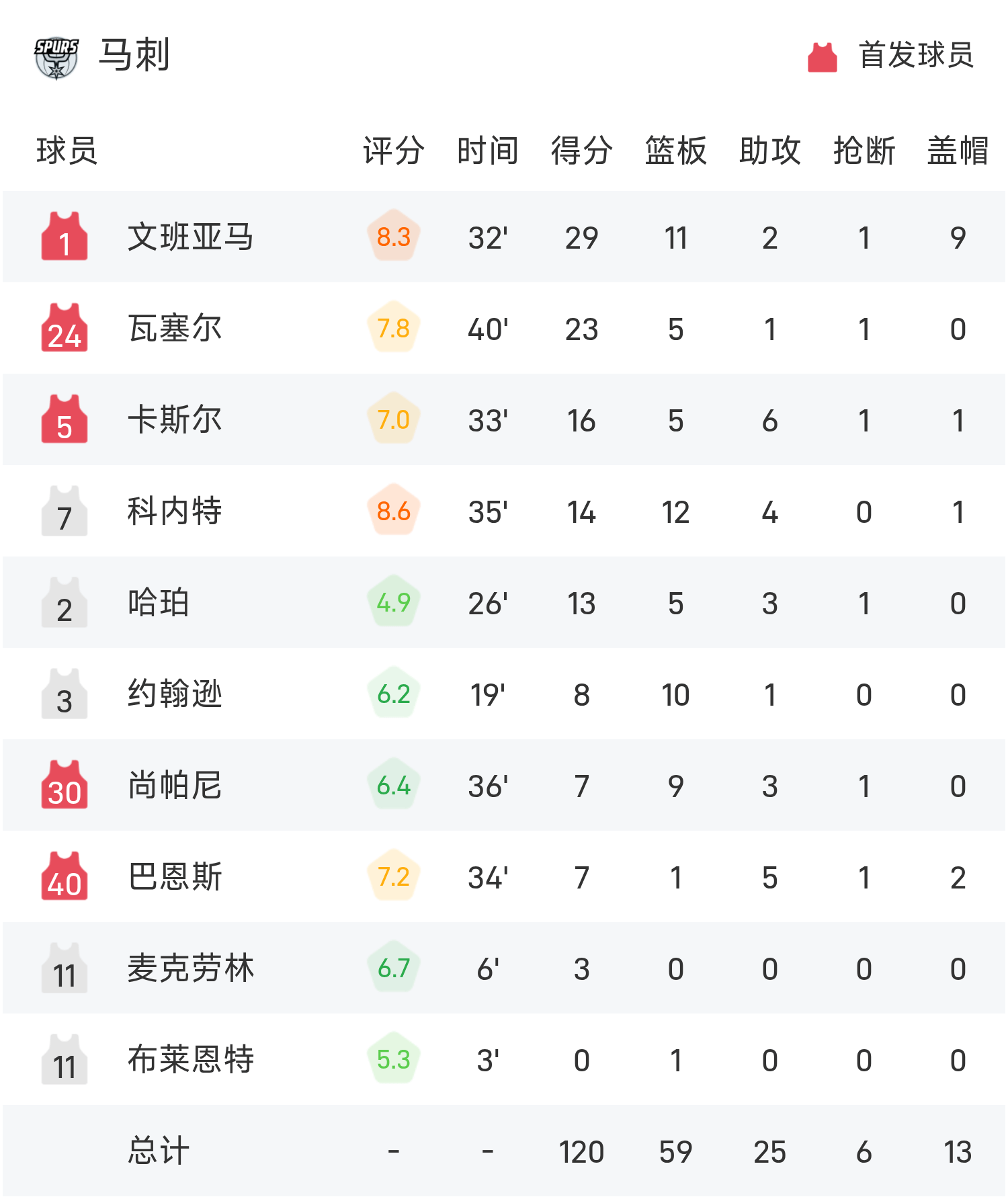 6686 खेल 25 अक्टूबर समाचार 25/26 NBA नियमित सीज़न में, पेलिकन ने स्पर्स का सामना किया। खेल के अंत में, पेलिकन स्पर्स से 116-120 से हार गए। बुन्यामा ने गेम में सर्वाधिक 29 अंक, 11 रिबाउंड और 2 सहायता हासिल की, जिससे स्पर्स को जीत मिली।