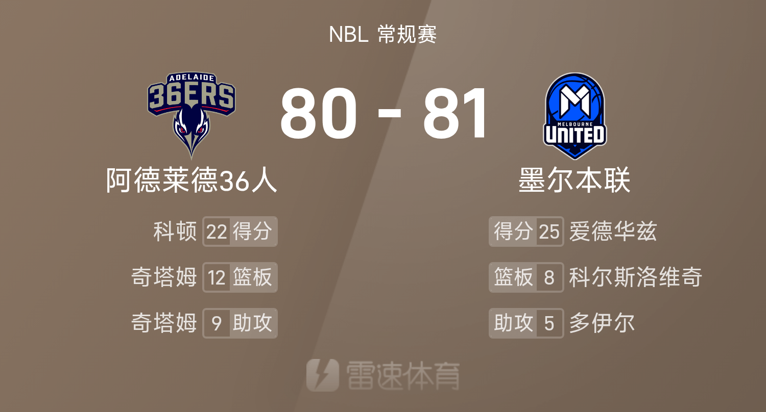 खेल के अंत में मेलबर्न यूनाइटेड ने एडिलेड 36ers को 81-80 से हरा दिया.