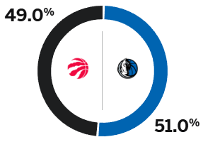 उनमें से, मावेरिक्स की जीत दर 51% है और रैप्टर्स की जीत दर 49% है।